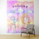 Tapete De Parede Garotinha Unicórnio Rosa Fofa Sentada na Lua Bebê