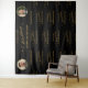 A showstopping backdrop for any milestone celebration — this personalized step and repeat features the couple's names, wedding date, and individual photo medallions set against a dramatic black background with repeating gold script typography. Fully customizable.