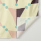 Geometric pattern with overlapping beige, peach, and brown triangles, accented by teal circles. The design forms a zigzag, creating a retro vibe.