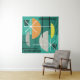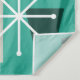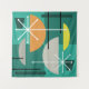 A retro abstract art design with symmetrical and asymmetrical geometric bowl shapes and lines. Teal turquoise, orange, yellow and gray.