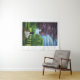 Girl in White Dress A girl in a white dress walking down a path lined with green and purple trees