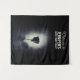 Tapeçaria de aniversário com uma ilustração macabra de uma rosa preta estilo goth/emo com sangue vermelho pingando das pétalas. Um fundo preto desgastado com o centro em cor creme destacando esta rosa misteriosa e interessante de fantasia.