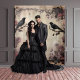 Tapete De Parede Gótica Moody Black Ravens e Rosas Rosa