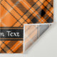Amostra moderna de tartã laranja e preto de halloween. Texto personalizado e monograma.