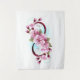 Símbolo de infinidade com flores e folhas de sakura florescendo floresce sobre fundo leve, pintado com tinta azul. O símbolo do infinito. Sakura floresce. Tatuagem. Hanami