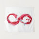 Símbolo infinito do fluxo contínuo de vinho tinto que entra em vidro de vidro sobre fundo branco.