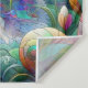 "Jardim Encantado: Cisnes de Esplendor" é uma peça de arte hipnotizante que transporta o espectador para um mundo de fantasia. Esta imagem lembra uma janela de vidro manchado, com cores vibrantes e padrões intrincados de mosaico. Dois majestosos cisnes, adorados com designs semelhantes a penas de pavão, são o ponto focal, colocados contra um pincel de um jardim místico. As reflexões na superfície da água somam um sonho de qualidade. Flores e folhagem em tons ricos e joalhados dão a impressão de um primavera eterno. Esta imagem é uma celebração da natureza e da fantasia, intricadamente projetada para cativar e adicionar um elemento de maravilha a qualquer produto.