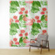 Design de padrão aquoso com flores e aves flamingos, monstera e palmeiras.