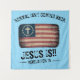 Jesus está voltando, esta design cristã mostra uma bandeira americana com uma cruz e as palavras "normal não está voltando, Jesus está, Revelação 14.
