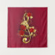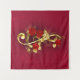 Limpa de ouro, decorada com rosas vermelhas e folhas de ouro em fundo texturizado.