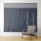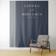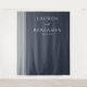 Este elegante pano de fundo de casamento apresenta um fundo azul-marinho profundo com linhas verticais brancas sutis à esquerda, criando um design sofisticado e minimalista. O texto é organizado em uma hierarquia equilibrada usando fontes serifadas limpas para os nomes e uma fonte script menor para "e", garantindo legibilidade e formalidade. Com amplo espaço negativo, este design transmite um clima de calma e expectativa, perfeito para celebrar seu dia especial. Seu layout direto e paleta de cores comedida o tornam ideal para casais que buscam um visual refinado e atemporal.