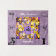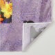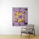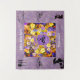 Um conjunto de flores multicoloridas em exibição atrás de uma lavanda e um quadro oval amarelo que diz 'Love Blooms..Forever. Dois pequenos pássaros pretos e brancos no centro com corações subindo. O texto é personalizável.