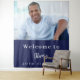 Uma tapeçaria para uma festa de aniversário de 40º (ou qualquer idade) para caras. Um clássico fundo azul marinho. Personalize e adicione sua própria foto de alta qualidade do aniversariante/homem. O texto: O nome é branco com um script de estilo moderno, escrito à mão. Tentativa de nome, idade e data. Pode ser usado como decor de parede para a festa ou como pano de fundo da cabine de fotos.