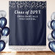 Decorra para qualquer ano de formatura de segundo grau ou reunião de classe escolar com este pano de fundo personalizado, pendurado na parede ou na cabine fotográfica com um confete prateado, galerias e luzes de cordas contra um marinho azul editável e um texto branco. Utilize para qualquer evento de celebração, pois todo o texto é editável. ALTERAÇÕES: A cor de fundo pode ser alterada para a cor da sua escola ou para a cor do tema da festa ou escolher um fundo gráfico estilizado e/ou alterar o estilo, cor, tamanho e posicionamento da fonte de texto no EDIT. OPÇÕES DE TAPESTRY: O exemplo é mostrado no tamanho de 68x80" — outros tamanhos estão disponíveis na página de pedidos. ASSISTÊNCIA: Para obter ajuda com a modificação ou personalização do design, alteração de cor, redimensionamento, transferência do design para outro produto ou, se você quiser coordenar itens, entre em contato com o designer ANTES DE ENCOMENDAR através da guia MENSAGEM de bate-papo Zazzle ou envie um email para makeitaboutyoustore@gmail.com.