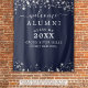 Crie um sinal de boas-vindas de reunião de classe, decoração de festas ou pano de fundo de fotos com o título WELCOME ALUMNI em uma tipografia moderna manuscrita, ano de aula editável e nome da sua escola, faculdade ou universidade ou outro texto personalizado acentuado com estrelas prateadas e luzes de cordas contra um marinho azul editável que você pode mudar para a sua escola ou tema de festa. Projetado para ser reutilizável para futuras reuniões. ALTERAÇÕES: Altere a cor de fundo ou qualquer estilo de fonte de texto, tamanho, cor, espaçamento e posicionamento em EDIT. OPÇÕES DE TAPESTRY: O exemplo é mostrado no tamanho de 68x80" — outros tamanhos estão disponíveis na página de pedidos. ASSISTÊNCIA: Para obter ajuda sobre modificação/personalização do design, alteração de cor, redimensionamento, transferência do design para outro produto ou se você quiser coordenar itens, entre em contato com o designer ANTES DE PEDIR por meio do Zazzle Chat ou makeitaboutyoustore@gmail.com.