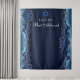 Elegante marinho azul e ouro agata o lado desta tapeçaria moderna do partido Bat Mitzvah. O nome da sua filha está escrito em um belo roteiro formal sob a Estrela de David. Perfeito para uma família na moda, judia, que celebra sua filha sendo chamada para a Torá.