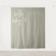 Esta tapeçaria moderna de chás de fraldas apresenta uma fonte escura e escrita à mão com uma combinação de cores branca e verde-sábio. Seu design é o perfeito chá de fraldas para a mãe moderna. Edite facilmente a cor para corresponder ao seu tema.