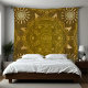 Libere o ouro abraço da harmonia: esta tapeçaria, onde ursos e flores entrelaçam em uma mandala moderna, convida-os a descobrir um mundo de beleza equilibrada e sofisticação serena.