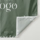 Modern sage green boho custom logo backdrop tapestry design with your business logo, arch background and custom headline. Featuring a step and repeat logo pattern with your custom text and contact info over an arched background. Create branded tapestry for your grand opening, market day, salon, trade show, exhibition, presentation, photo booth or any other company event.
