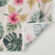 Um padrão de aquarela vibrante com folhas de Monstera e flores de hibisco cor-de-rosa, acentuadas com folhagem tropical ouro. Perfeito para trazer um toque de paraíso para qualquer espaço ou produto.