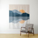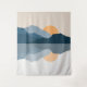 Abstrato de ilustração colorida do nascer do sol com montanhas azuis refletidas no lago