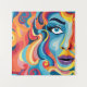 Vibrantes espirais de cor azul, laranja e amarelo criam a forma abstrato do rosto da mulher num estilo moderno e caprichoso. As linhas ousadas e as cores brilhantes dão a impressão de movimento e fluidez enquanto evocam um sentido de arte e emoção.