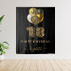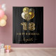 Uma tapeçaria para uma festa de 18 anos feminina e glamorosa. Fundo preto, decorado com balões. Com o texto: Feliz Aniversário. Personalize e adicione um nome. O nome é escrito em dourado rosa escuro com um estilo de letra manuscrita moderna com floreios. O número 18 é escrito com uma fonte de balão moderna, estampa de leopardo. Para manter os floreios, apenas exclua o nome da amostra, deixando os espaços ou emojis antes e depois do nome. Pode ser usado como uma faixa de boas-vindas, decoração de parede para a festa ou como fundo para cabine de fotos.