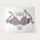 Um sutiã verde limão roxo e chave, com o texto dizendo, "Obrigados Bra."