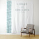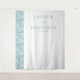 Este elegante pano de fundo para casamento apresenta um design minimalista com uma estética limpa e moderna. O lado esquerdo exibe um padrão de onda abstrato em tons suaves de azul-esverdeado, enquanto o lado direito permanece branco para um visual equilibrado. A tipografia é central, usando uma fonte serifada clássica para os nomes e uma escrita cursiva para "e", criando um sentimento sofisticado e romântico. Perfeito para casamentos ou anúncios de noivado, este design emana tranquilidade e antecipação com sua paleta de cores serenas e composição simples.