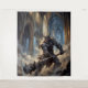 A powerful Oni demon, brandishing a spiked kanabo, emerges through dust and debris within the hallowed halls of a Gothic cathedral. Sunlight streams through stained glass, casting a divine light that contrasts with the primal fury of this legendary Japanese spirit. This is perfect for fans of Japanese Mythology, Dark Fantasy, and Gothic Architecture.