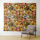 Folheto desenhado à mão, constituído por lotas, dália e flores crisântemas, bagas diversas, folhas e insetos