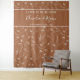 Painel de Fundo de Casamento com Flor Silvestre Laranja Queimada Terracota com delicado desenho floral linear. A redação é totalmente editável e atualmente lê "o amor está em flor" seguido pelos nomes dos noivos e data do casamento. Tema botânico delicado com padrão de flor silvestre em arte linear branca e tipografia de letra manuscrita elegante. Por favor, navegue pela minha coleção de Desenhos de Flor Silvestre para encontrar itens correspondentes.