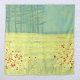 Uma pintura moderna e contemporânea com uma flor pacífica encheu o campo de verão com pássaros voando contra o céu e uma floresta de pinheiros à distância. Cores frescas e elevatórias amarelas e verdes. Arte original de Nic Squirrell.