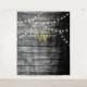Um fundo de madeira preta de celeiro rústico com luzes de corda douradas penduradas e monograma dourado correspondente. Um sentimento rústico de madeira queimada com um toque de glamour dourado. Personalize o monograma e o texto e faça-o seu.