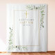 Com delicadas folhas em aquarela, você pode personalizar o nome, evento e data neste chique pano de fundo botânico para fotografia de batismo ou batizado. Desenhado por Thisisnotme©