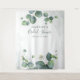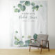 Pano de fundo de estúdio fotográfico com folhas de eucalipto. Ótima decoração de parede para festas e banner para um chá de noiva moderno e sofisticado com tema botânico. Apresenta folhagem de eucalipto com fundo de tons rosados em aquarela. Altere facilmente os detalhes clicando no botão "Personalizar" acima.