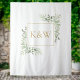 Com delicadas folhas de folhagem em aquarela, este pano de fundo botânico sofisticado para estúdio fotográfico pode ser personalizado com as iniciais do seu monograma em tipografia dourada elegante. Concebido por Thisisnotme