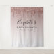 Tapeçaria de fundo de photobooth personalizada chic e elegante para o seu chá de bebê, apresentando glitter rosa ouro falso pingando em um fundo rosa ouro ombre e seu primeiro nome em uma fonte estilosa. Você pode personalizar ainda mais com a data do chá.