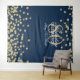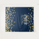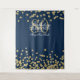 Elegante pano de fundo para cabine de fotos de festa de 80º aniversário em dourado, azul naval e confetes brilhantes.