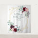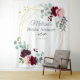 Fundo rosa burgundy com flores botânicas para cabine de fotos no seu chá de noiva neste outono e inverno. Apresenta uma moldura geométrica em dourado falso com tipografia elegante. Celebre o próximo casamento com estilo e elegância com amigos e entes queridos antes do grande dia.