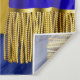 Cenário de chá de bebê do príncipe com um adorável príncipe étnico afro-americano em uma bela cortina azul real e dourada com fundo de borlas. Este cenário de chá de bebê do príncipe é facilmente personalizado com o texto de sua escolha no estilo de fonte que preferir. Você também pode remover o gráfico de texto "um pequeno príncipe está a caminho" e pode mover e redimensionar o bebê conforme necessário.