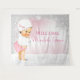 Pano de fundo de banner para chá de bebê menina no país das maravilhas de inverno com adorável bebê menina morena vestindo um lindo traje de neve rosa em um belo fundo de neve do país das maravilhas de inverno. Este lindo banner de pano de fundo para chá de bebê no país das maravilhas de inverno é facilmente personalizado com o texto de sua escolha.