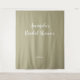 Uma tapeçaria moderna com fundo verde-sage para chá de noiva. Personalize com seu próprio texto. Perfeita como um sinal de boas-vindas ou fundo para cabine de fotos.