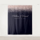 Pano de Fundo para Fotografia de Casamento em Azul Naval com Confetes em Rose Gold. Lindos confetes em rose gold com estilo glamoroso e vintage simples contra um fundo azul naval. Este design moderno personalizado pode ser facilmente personalizado com seus próprios detalhes.
