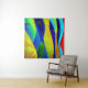 Uma paisagem abstrato de colinas rolantes em cores vibrantes brilhantes com linhas angulares.