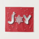 A palavra alegria com um floco de neve para o "o" com mais pequenos flocos de neve, e pinguim e um urso polar.