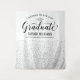 Elegante fundo de festa de formatura para fotos apresenta um chapéu de graduado prateado, "Graduado" em letra cursiva e texto personalizado moderno que pode ser personalizado com o nome e a escola do graduado. Um padrão de confetes prateados caindo decora o fundo - adereço de festa perfeito para os convidados se posicionarem em frente para fotos com o formando! Vários tamanhos estão disponíveis.