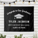 Felicite seu formando em estilo com um moderno painel de fundo personalizado para fotos em festa de formatura, com boné de cor prateada e texto personalizado esportivo para o nome do formando, a escola e o ano de aula. As cores pretas, prateadas e brancas podem ser personalizadas para corresponder às cores da sua parte.