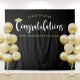 Cerimônia de formatura extra grande ou pano de fundo de festas para todas as fotos dos formandos! O design é minimalista e apresenta um design de script de caligrafia branco moderno, com destaque para boné de formando dourado sobre fundo preto. Personalize o texto personalizado com o ano de aula e o nome da escola.