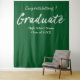 Faixa de boas-vindas de congratulações moderna, simples e minimalista para graduado, fundo de parede de fotos. Projetado com tipografia moderna de pincel manuscrito branco em fundo verde para combinar com as cores da escola, faculdade ou universidade. Personalize os detalhes da escola ou faculdade e ano da turma.